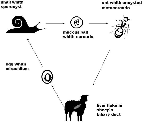 Fig. IV.9. Life cycle of the fluke worm Dicrocoelium dendriticum